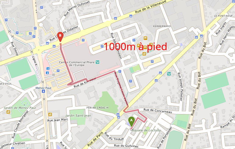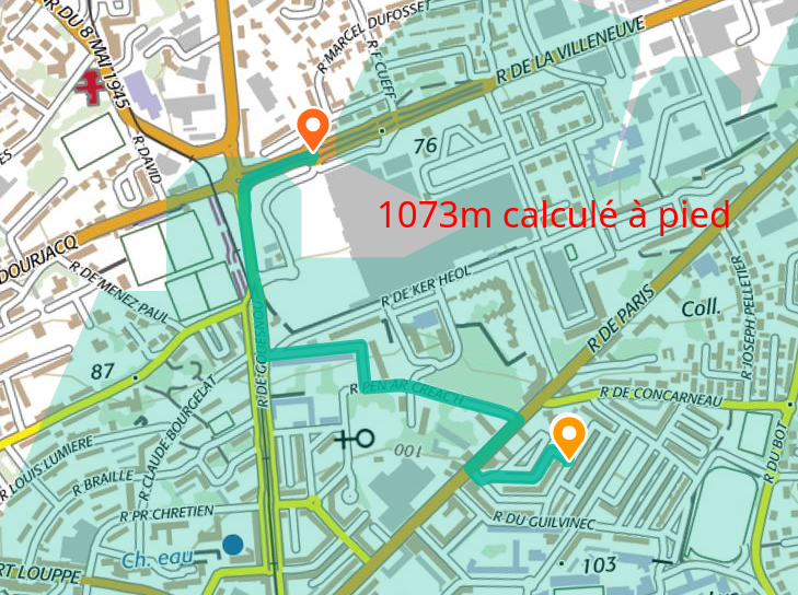 Avant de commencer, j'ai cliqué au hasard sur une rue de Brest, et je suis reparti de ce point pour les tests, donc si vous habitez cette rue, je n'ai rien contre vous, c'est le hasard ;-)