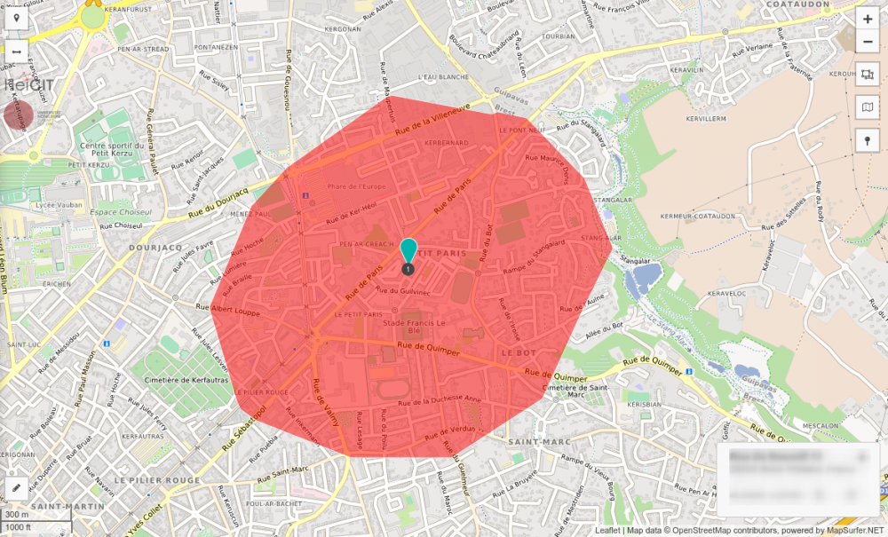 Votre oeil aiguisé aura remarqué que tous les tracés proposés sont différents ! Pourtant, cela devrait être simple, une distance de 1km autour d'un point.