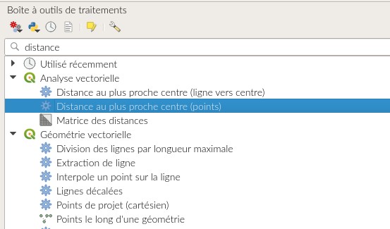 On commence par choisir le bon traitement dans la boîte à outils. C'est à dire Distance au plus proche centre (points).