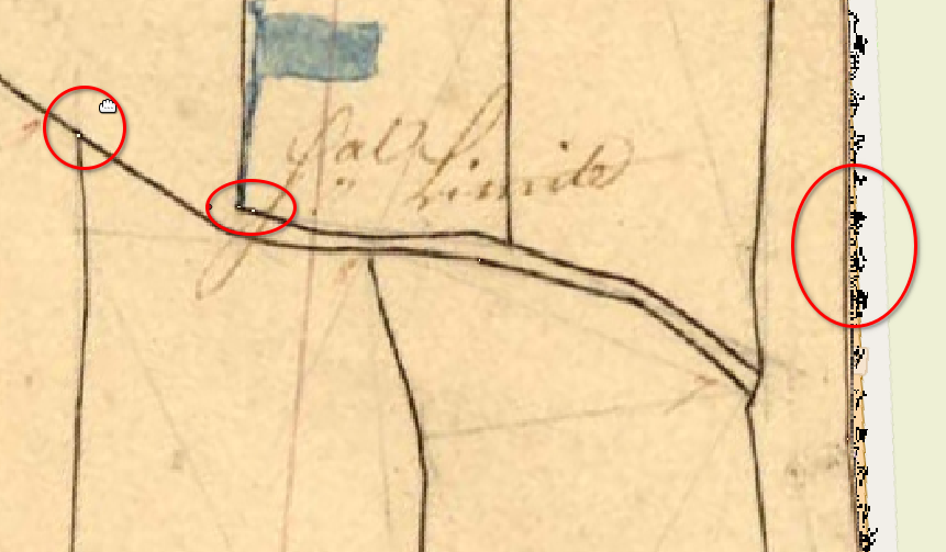 J'ai donc fait les deux. Quand je géoréférence puis détoure, cela me permet d'éliminer les les bavures du passage des couleurs en transparent. Comme on peut voir sur l'image, il existe un fondu automatique qui peut être gênant. Détourer les images après georeferencement permet de faire des bords nets. Par contre, j'ai eu des souci avec les fichiers, même en gardant le géoréférencement.
