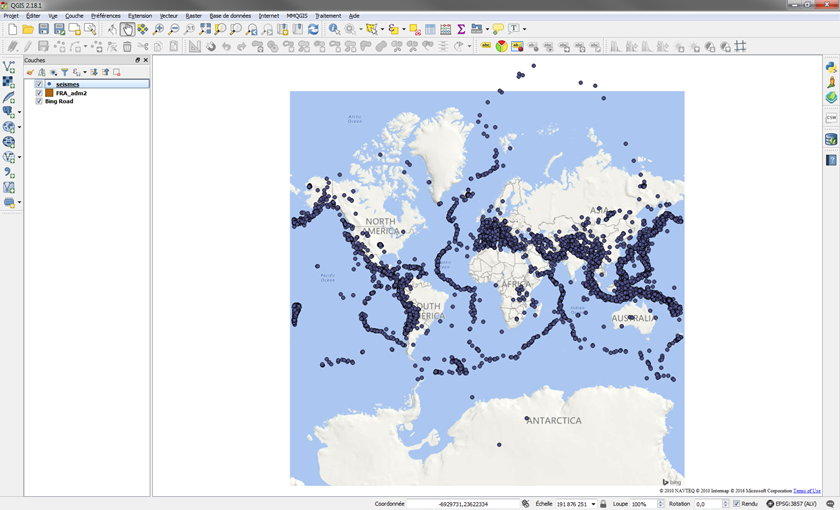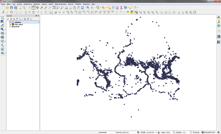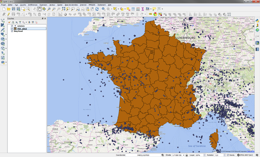 Pour éviter d'avoir à promener et ouvrir tous les séismes du monde, je vous propose de réduire leurs nombres à une sélection centrée sur la France. On peut le faire par plusieurs solutions