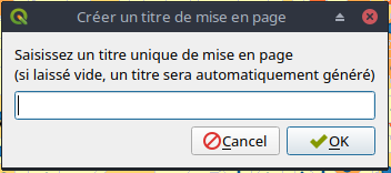 Vous devez un nom à votre mise en page, mon conseil est de donner un nom qui a du sens et non pas mise en page 1, personnellement, j'aime bien indiqué le format dans le nom : A3H-machin = format A3 horizontal, A0V-truc = format A0 (841 x 1189 mm) vertical = portrait. H horizontal=paysage, V vertical=portrait, sinon on peut utiliser P portrait et L landscape. Mais c'est vous qui voyez, un nom sera donné automatiquement de toute façon.