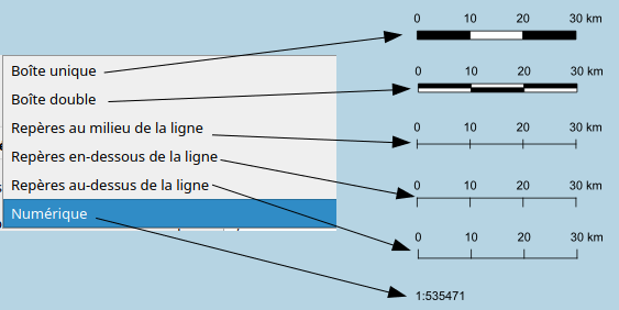 1. propriétés principales, vous dîtes sur quelle carte vous travaillez, et surtout vous choisissez le style de votre échelle :