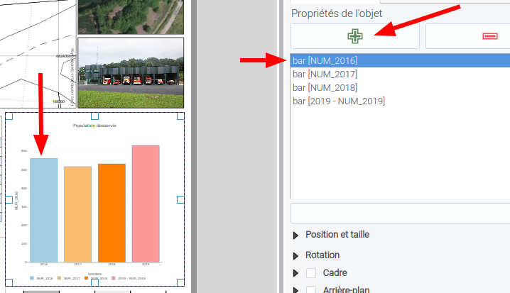 Alors, pour faire un graphique avec les données en colonne, c'est un peu long, espérons que vous n'ayez pas 15 colonnes à faire. Donc, je place mon graphique, puis dans les propriétés, on ajoute un graphique. Et en vrai, je ne sais pas du tout si c'est la population ou le nombre d'habitant ou le nombre de vaches...........................
