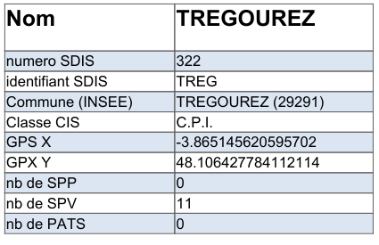 Pour faire ces fiches, je pars sur les données qui sont mon leitmotiv : LES POMPIERS (cf. import de poteaux incendie, caserne 1, caserne 2) . J'ai vraiment cherché d'autres données : les aires de covoiturage, les points de rassemblement ONF, j'ai parcouru pleins de catalogues, et finalement, je suis retourné voir le SDIS sur Géobretagne. Et là, des données chiffrées, des photos, un peu d'info mais pas trop