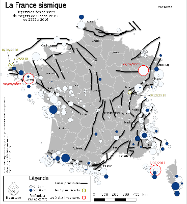 Suite de la partie 1, si vous avez suivi le précédent article, vous avez une carte de France avec des points d'emplacement des séismes. Alors continuons
