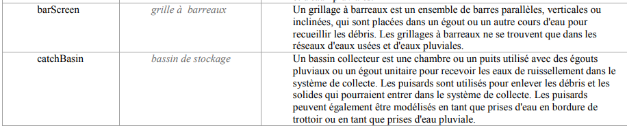 En examinant, les fichiers j'ai trouvé plusieurs soucis, comme par exemple des fichiers en double, des listes non traduites (alors que le fichier accompagnant l'est), sans description ou sans 'identifier', et pour l'eau des traductions littérales (un catchbasin est une décantation, pas un bassin de stockage, et un barscreen un dégrilleur....). Ou je n'ai pas trouvé UtilityDeliveryTypeValue nécessaire pour les canalisations...
